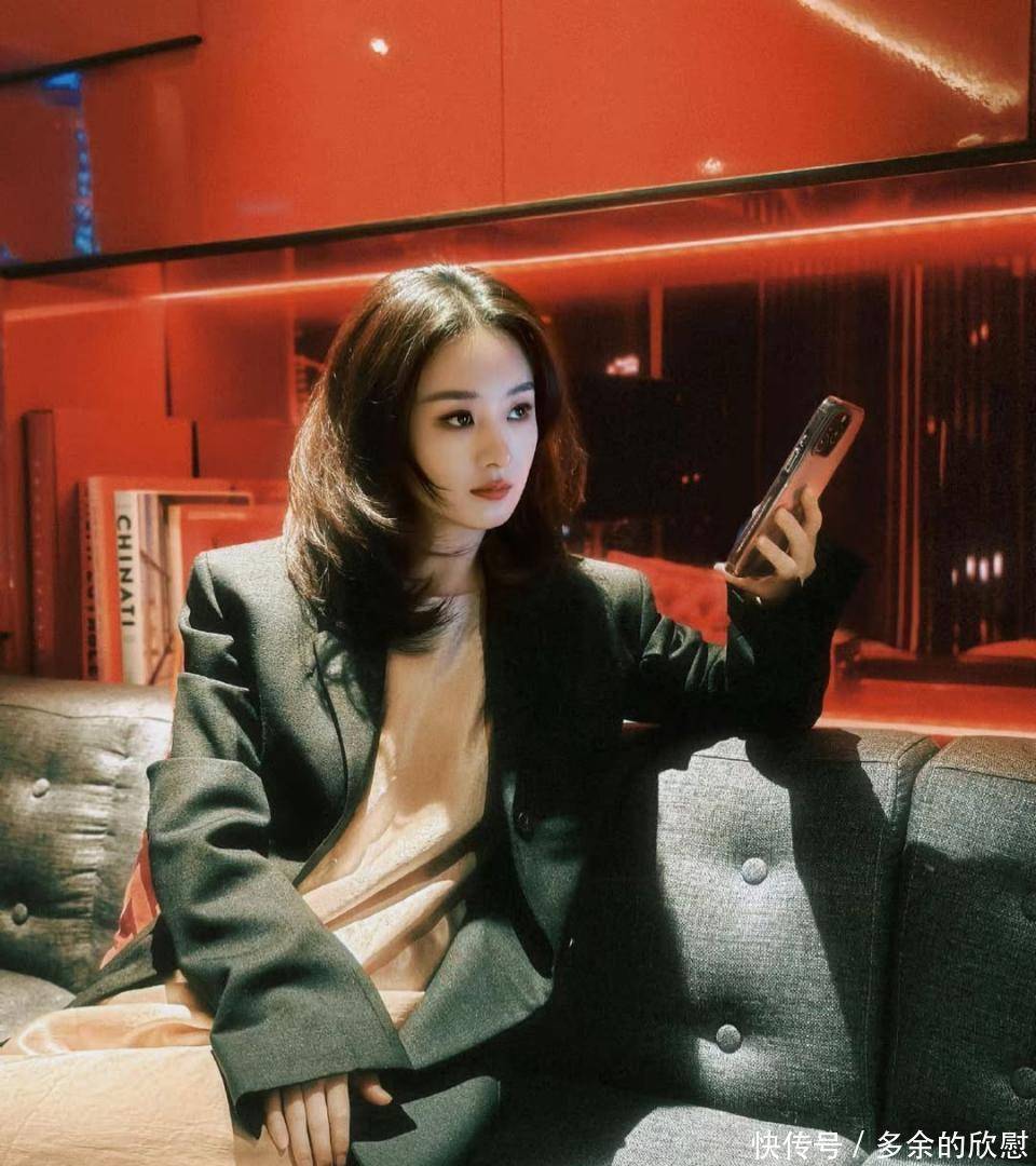 条纹向来是经典不败的日常元素,但赵丽颖选择的是线条清楚、间距利落的黑白条纹,避免过于休闲或童趣。搭配亮橘色耳环,成功在脸部附近制造视觉焦点,让整体精神度瞬间提升。这类配色对比清楚却不花俏,非常适合轻熟女借镜。条纹负责稳定造型基底,配件则负责「提亮」,是相当实用的减龄公式。赵丽颖减龄穿搭技巧2:深色西装外套+柔软内搭